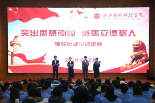 为深入贯彻落实习近平新时代中国特色社会主义思想,全面落实立德树人根本任务,着力提升我校辅导员的理论水平、专业素养、宣讲能力和工作技能,促进辅导员队伍专业化、职业化发展。我校学工部举办了2020年辅导员晚讲评大赛。本次大赛共分为初赛和决赛两个环节,初赛已于本月上旬由各学院(校区)进行完毕,共推选出20名辅导员参加决赛。