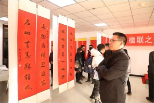 开幕式结束后,现场师生纷纷进入展厅欣赏楹联书法作品。