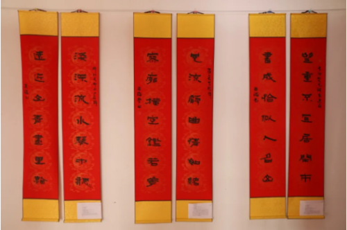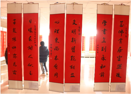 此次展出的楹联书法作品主题鲜明、内涵丰富,或苍劲有力,或隽永飘逸,或清秀雅致,彰显了楹联书法的技艺和魅力。精彩的作品赢得现场众多师生的一致好评。
